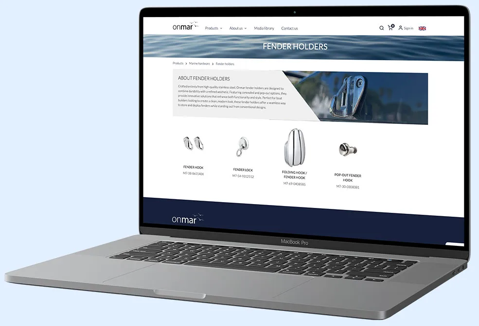 För Onmar skapade vi en hemsida med fokus på deras stora sortiment av båtdelar. Genom ett egenutvecklat plugin integreras WooCommerce med affärssystemet Monitor.