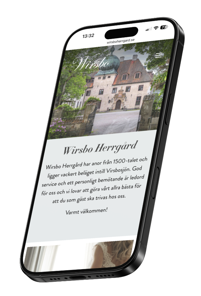 I samband med att nya ägare tog över Wirsbo Herrgård och Ridcenter 2025 fick vi uppdraget att bygga två nya webbplatser, en för herrgården och en för ridcentret. Wirsbo är en fantastik vacker plats och det ville vi framhäva med nya bilder och film. Vi projektledde fotografering/filmning och tog hjälp av fotograf Filip Fyhr med bilder och videoklipp. Webbplatsen skapade vi i WordPress med en design som gav utrymme för stora fina bilder.